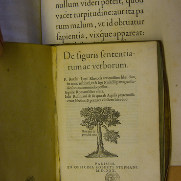 À la fin de la décennie 1540, un cicero romain gravé de la main de Claude Garamont est utilisé par Conrad Neobar, premier imprimeur du roi pour le grec. Ayant déménagé à plusieurs reprises, il installe en 1550 son propre atelier de gravure et de fonte de caractères, pour la première fois séparé d’une imprimerie proprement dite, rue des Carmes à l’enseigne de la Boule, et produit pour Robert Ier Estienne, imprimeur du roi, de très beaux caractères de différents corps (Gros Canon 40-44 ; Saint-Augustin 12-13) qui seront utilisés pour la composition de livres religieux.